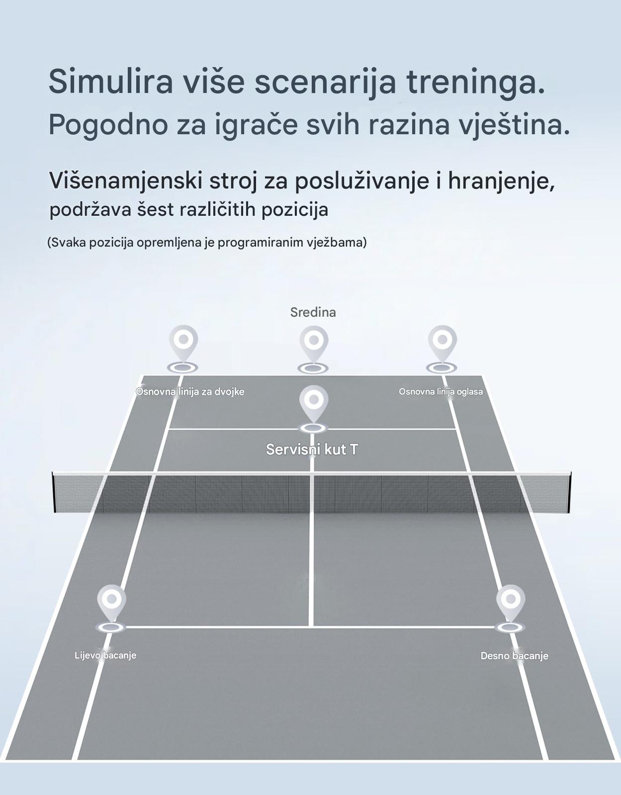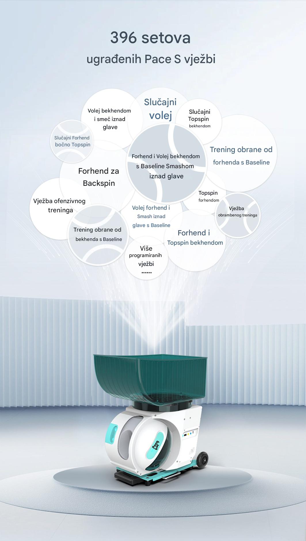 Trenirajte kao profesionalac uz napredne AI funkcije, programabilne drilove i potpunu kontrolu nad svakim udarcem. Dizajniran za intenzivne sesije, teniske akademije i ozbiljne takmičare.